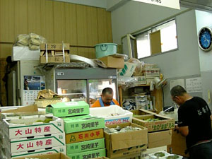 谷様 : あほ! 謙虚だぞおれは! そうは見えんかもしれんが…おれが考えるには、市場での付き合いってのはお客様との付き合いとは違って仲卸、すなわちお前さんたちとは対等な立場に立って物を仕入れたいと思ってる。どういうことかというと、朝市場に行ってお前さんたちが必死になって商品を販売してるのを見てるだろ、今日中に売り切ってしまいたい商品だとか困っている商品は助けてあげたいし、もちろんこっちの必要としている商品は助けてもらいたい。もちろん価格面でもな。基本的にお互いに同じ気持ちになって仲良く助け合っていきたいということだ。