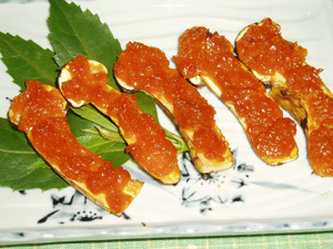 なかちゃん : え~これまた簡単です。先ほどと同じように厚めにスライスした松茸に裏ごししたうにを塗ってオーブンで焼くだけです。