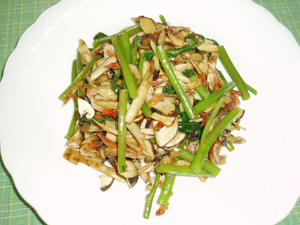 なかちゃん : 松茸は短冊状に切ります。空芯菜も松茸くらいの大きさに切っておきます。油はサラダ油でもよいのですが、中華風に仕上げたいならごま油の方が良いと思います。まず油を敷いて空芯菜、さくら海老を軽く炒めてから松茸も炒めます。塩、砂糖、胡椒で味を調えたらオイスターソースで仕上げます。松茸は炒めすぎるとフニャフニャになってしまいますので、炒めすぎには注意したほうがいいと思います。