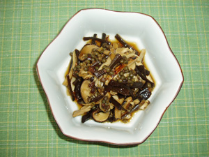 なかちゃん : 松茸を刻んだものときゃらぶき、実山椒を少な目のだし汁で煮ます。だし汁が多いとシャビシャビになってしまいますので気をつけてください。煮立ってきたらみりん、醤油で味を整えていきます。甘さが足りないようなら砂糖を加えてもいいと思います。きゃらぶきと実山椒から味が染み出してきますので少な目の味付けで大丈夫ですよ。