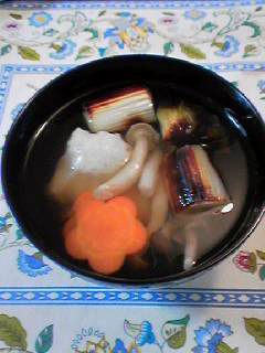ゆりちゃん : 焙ってある下仁田葱がお出しを吸っておいしい!! やっぱり焦げ目がポイントかな。香ばしいお雑煮にできあがっています。…これで終わりですか? み~んなおいしすぎて一押しを決められないです…おかげでほとんど2人前以上食べちゃって、せっかくダイエットして1.5kg減量したのに元に戻っちゃったじゃないですか! 次回はダイエットレシピを中心に企画してほしいな~♥