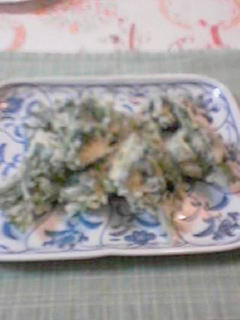 なかちゃん : 天婦羅なんで作り方といっても衣を付けて揚げるだけですからね~。あえて言うならモロヘイヤは5cmくらいに切ってかき揚の要領で揚げると食べやすいですよ。切ってるとヌルヌルするモロヘイヤですが、揚げて食べてみると意外な食感が…あとはゆりちゃんのコメントでお願いしま~す。