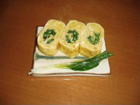 D : 突然料理をまかされたはいいけれどいったい何を作ればよいのやら…しかも山菜ですか…なかなかクセのある野菜ですね。とりあえず食材を生かした料理を作るようにがんばります!! ではまずカタクリですね。山菜とはいえ淡白なお野菜ですので卵で巻いてみました。カタクリは軽く下湯でして水にさらしておきます。卵はだし巻き卵を作る要領で下準備しておきます。味は各家庭お好みの味付けがあると思いますのでご自由にどうぞ。個人的には濃い目の味付けが好きなので上記の分量で作りました。後は普通にカタクリを中心に巻いて卵焼きを作れば完成ですね。普通に切っただけでは何が入ってるか分からないといけないので茹でたカタクリも添えておきました。